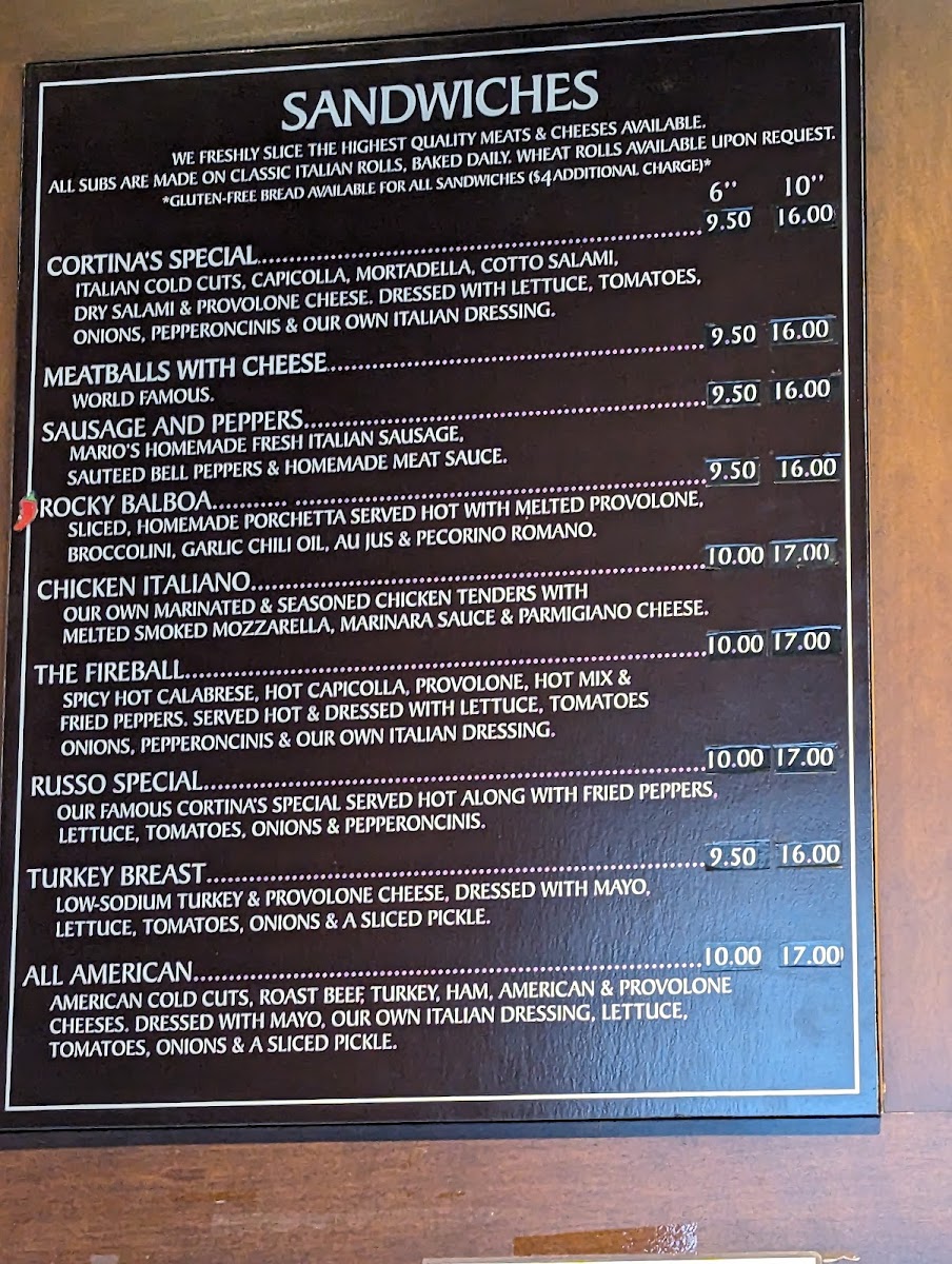 Customer favorites include the Rocky Balboa and the Cortina's Special Italian, known for their perfect flavor combinations. Every visit is a promise of high-quality, fulfilling meals in a charming atmosphere. Don’t miss the adjoining market, filled with fresh ingredients and delectable desserts!