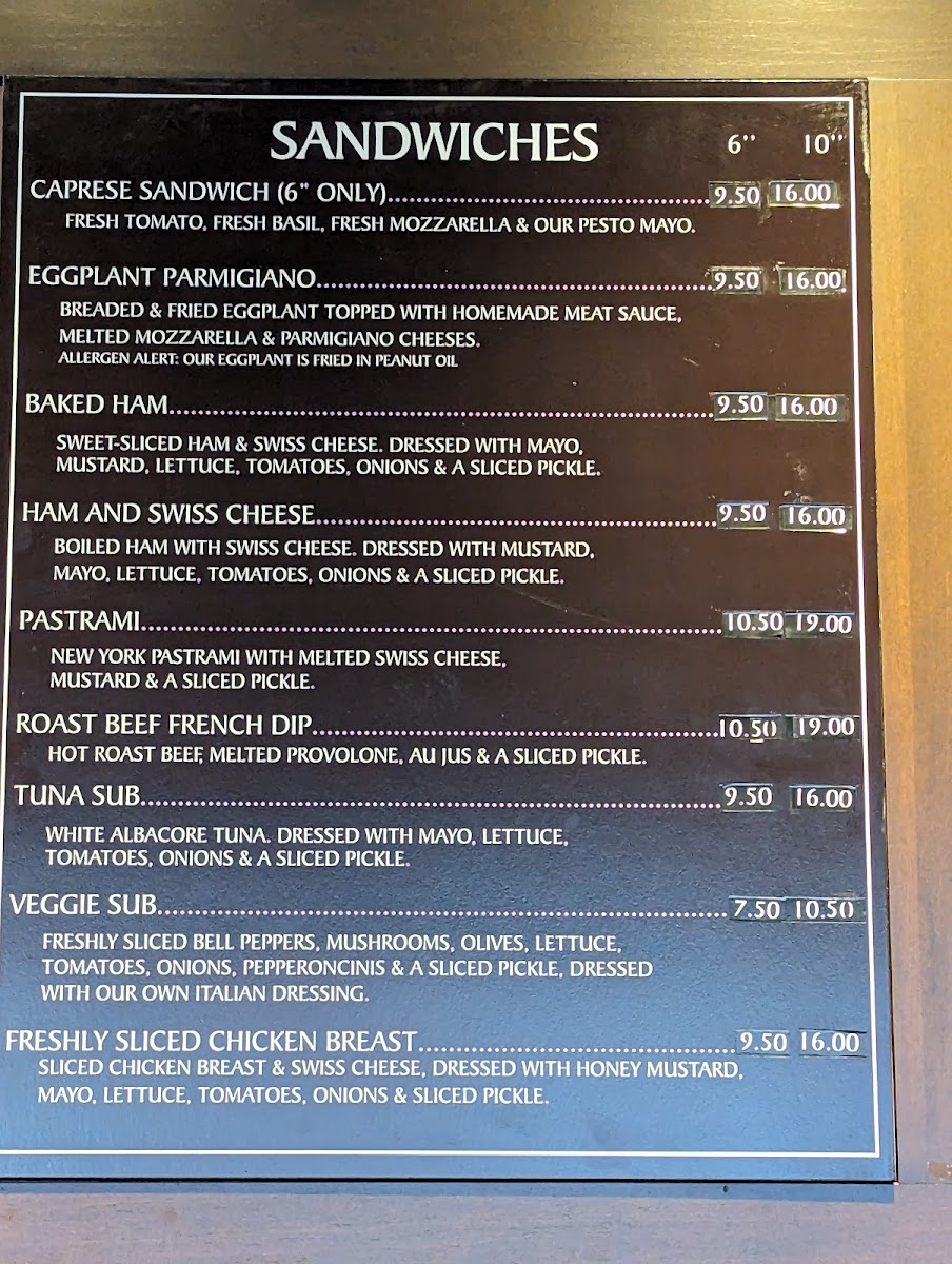 - Sandwiches: Try the All American or Baked Ham Sandwich, both served on freshly baked Italian rolls for a true taste of Italy.